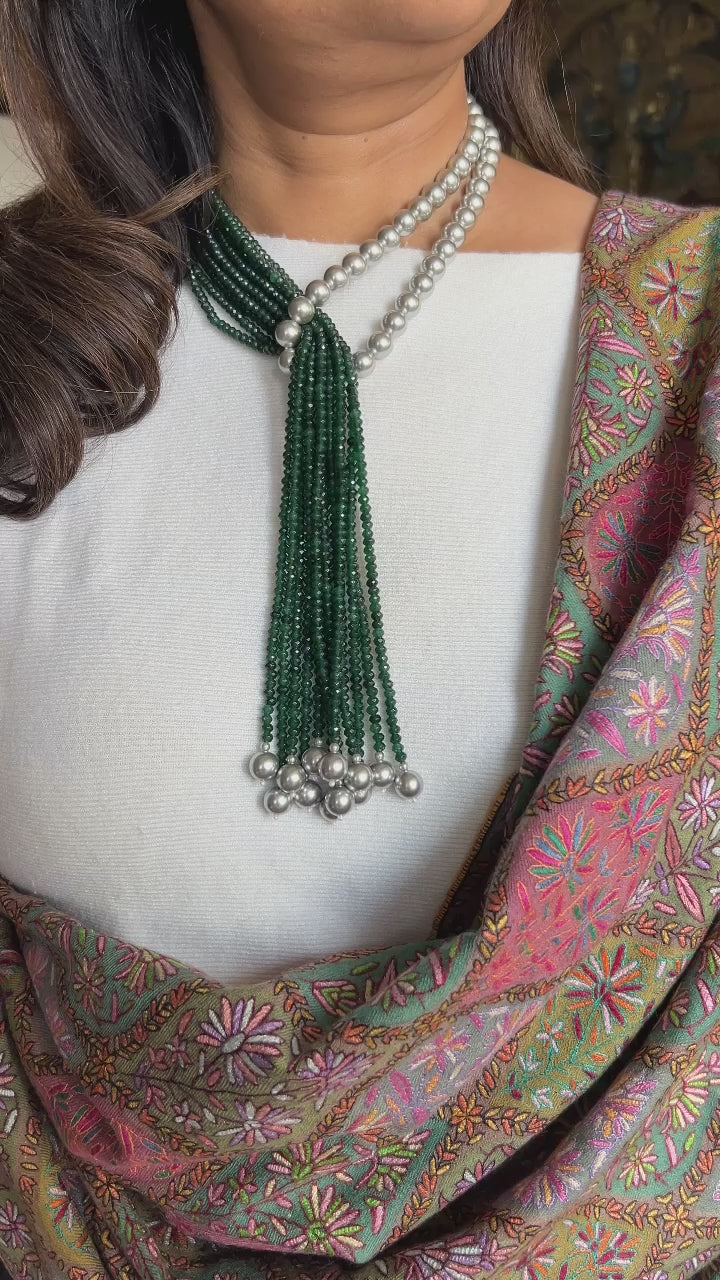 قلادة متعددة الطبقات مرصعة بلآلئ الصدف والعقيق الأخضر